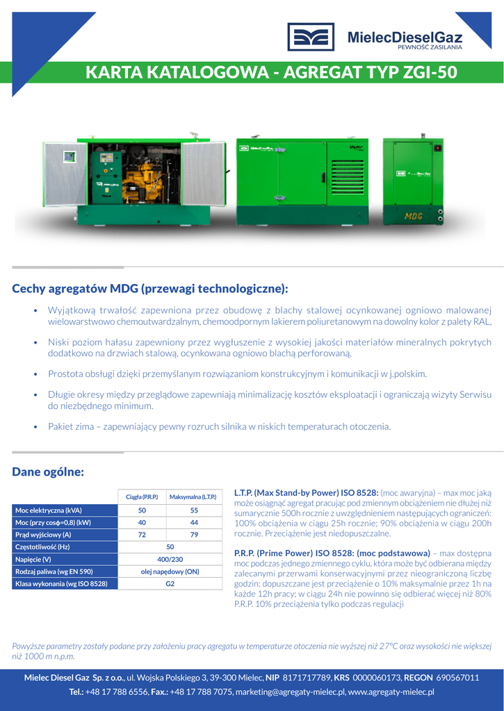 KARTA KATALOGOWA - AGREGAT TYP ZGI-50