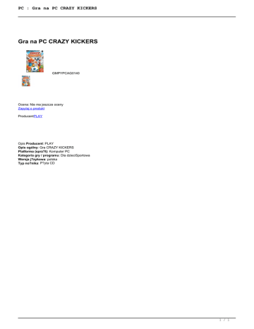 PC : Gra na PC CRAZY KICKERS Gra na PC CRAZY KICKERS GMPYPCAG0140 Ocena: Nie ma jeszcze oceny Zapytaj o produkt ProducentPLAY Opis Producent: PLAY Opis ogólny: Gra CRAZY KICKERS Platforma (sprz?t): Komputer PC Kategoria gry / programu: Dla dzieciSportowa Wersja j?zykowa: polska Typ no?nika: P?yta CD 1 / 1 Powered by TCPDF (www.tcpdf.org)