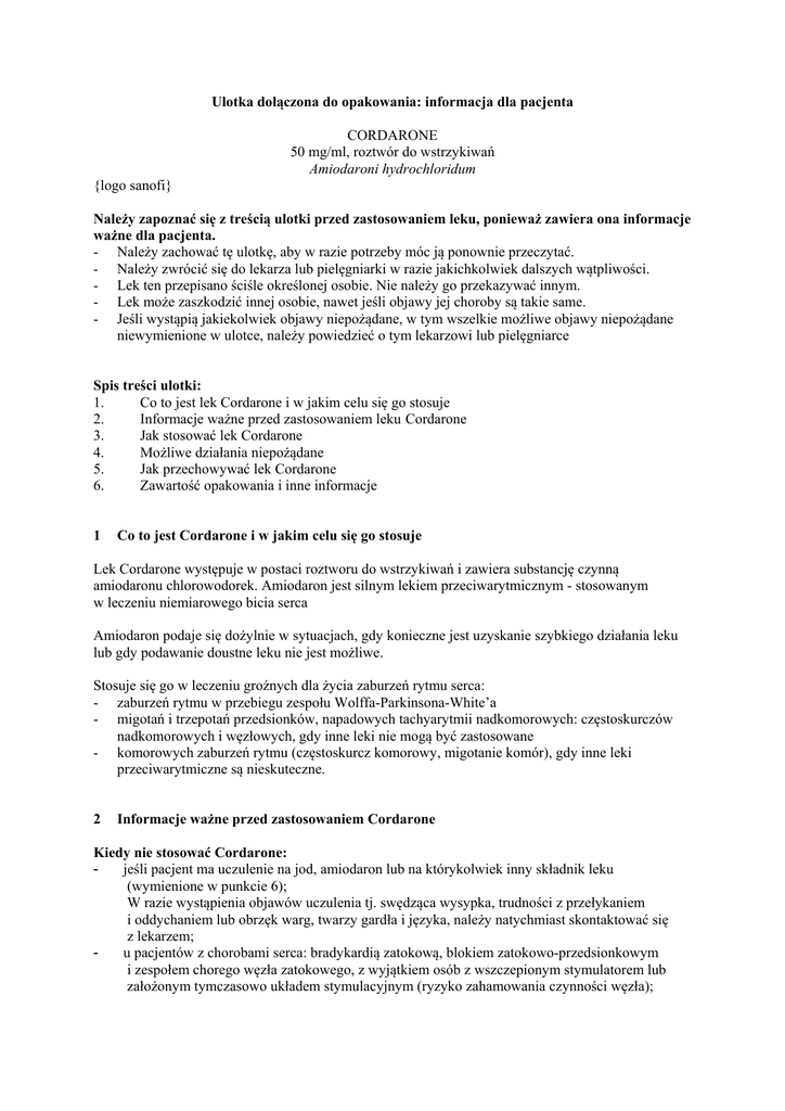 Informacje ważne przed zastosowaniem Cordarone