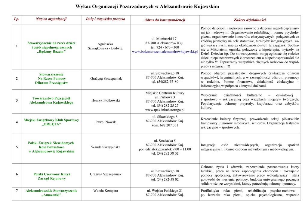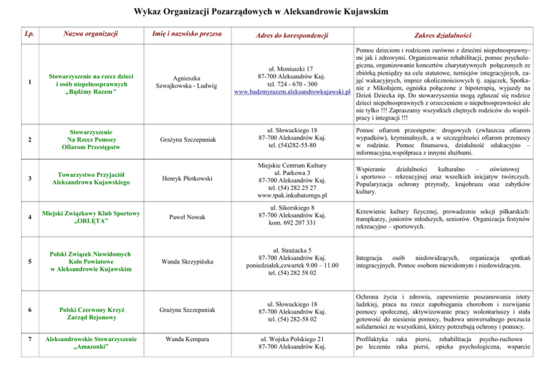 Wykaz Stowarzyszeń - Aleksandrów Kujawski