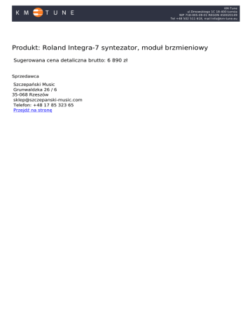 KM-Tune ul.Dmowskiego 1C 18-400 Łomża NIP 718-005-09-01 REGON 450020149 Tel +48 502 511 618, mail [email protected] Produkt: Roland Integra-7 syntezator, moduł brzmieniowy Sugerowana cena detaliczna brutto: 6 890 zł o Sprzedawca Szczepański Music Grunwaldzka 26 / 6 35-068 Rzeszów [email protected] Telefon: +48 17 85 323 65 Przejdź na stronę Powered by TCPDF (www.tcpdf.org)