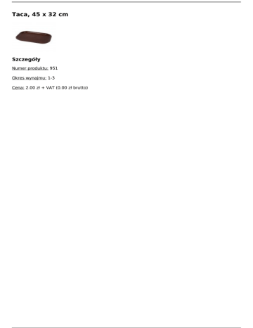 Taca, 45 x 32 cm Szczegóły Numer produktu: 951 Okres wynajmu: 1-3 Cena: 2.00 zł + VAT (0.00 zł brutto) Powered by TCPDF (www.tcpdf.org)