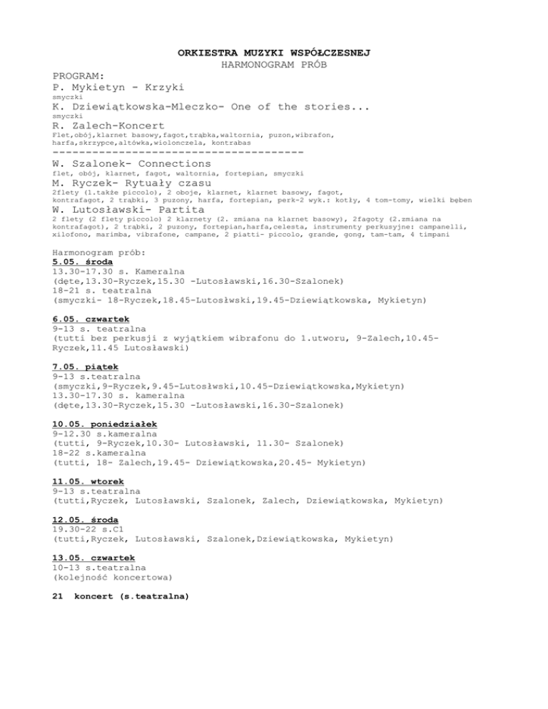 ORKIESTRA MUZYKI WSPÓŁCZESNEJ HARMONOGRAM PRÓB