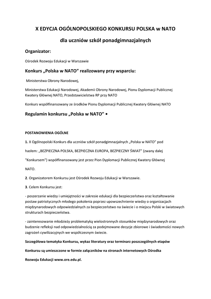 X EDYCJA OGÓLNOPOLSKIEGO KONKURSU POLSKA w NATO