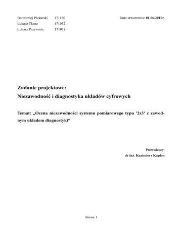 Temat: „Ocena niezawodności systemu pomiarowego typu '2z3' z zawodnym układem diagnostyki”