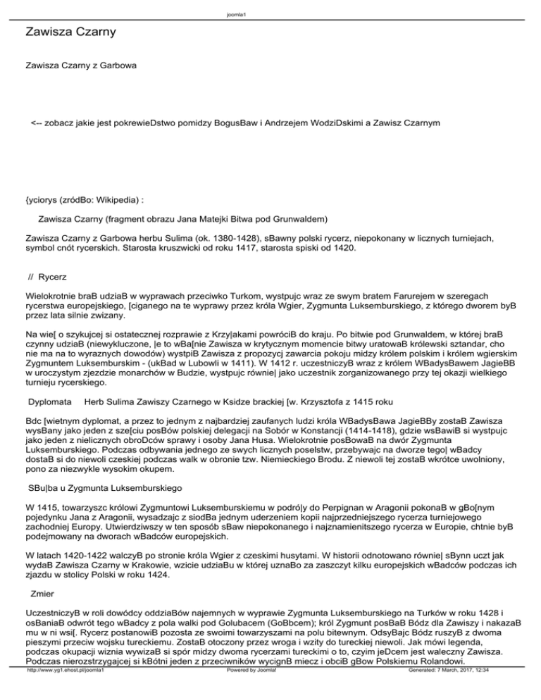 Posta Zawiszy Czarnego szybko obrosBa w legend, i to wyjtkow legend, bo opart na faktach. Dla wielu pokoleD Polaków