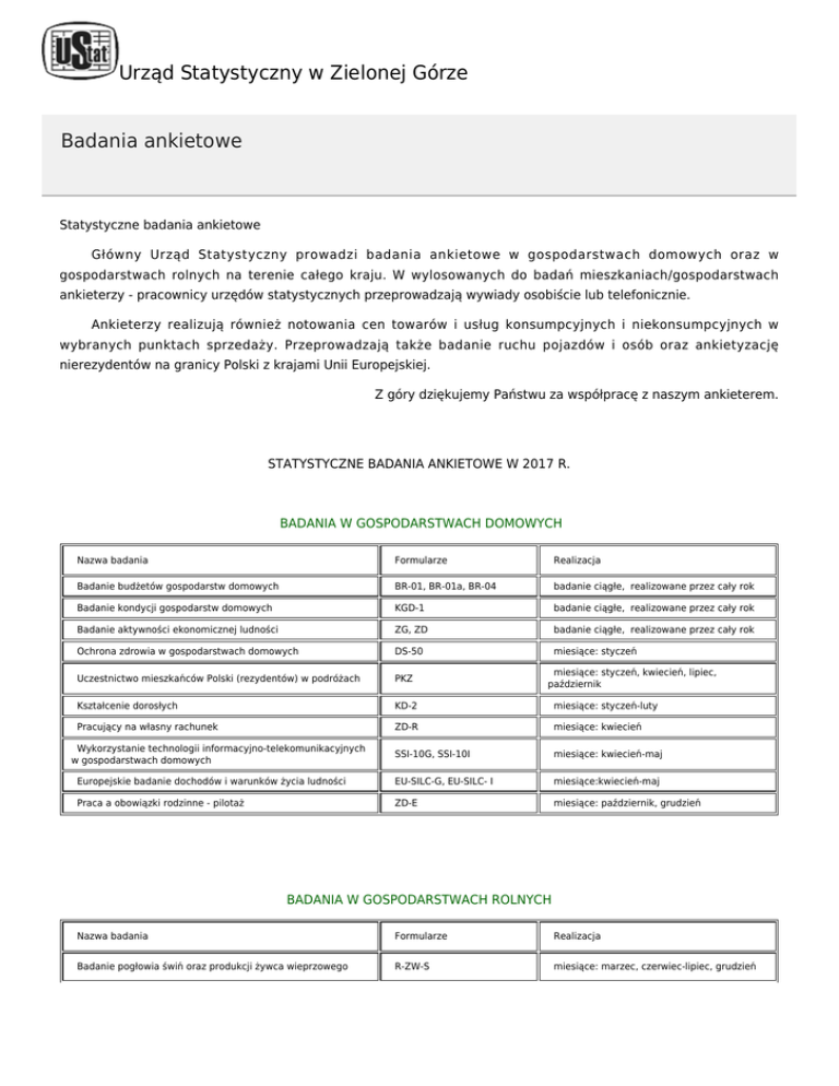 Urząd Statystyczny w Zielonej Górze / Badania ankietowe