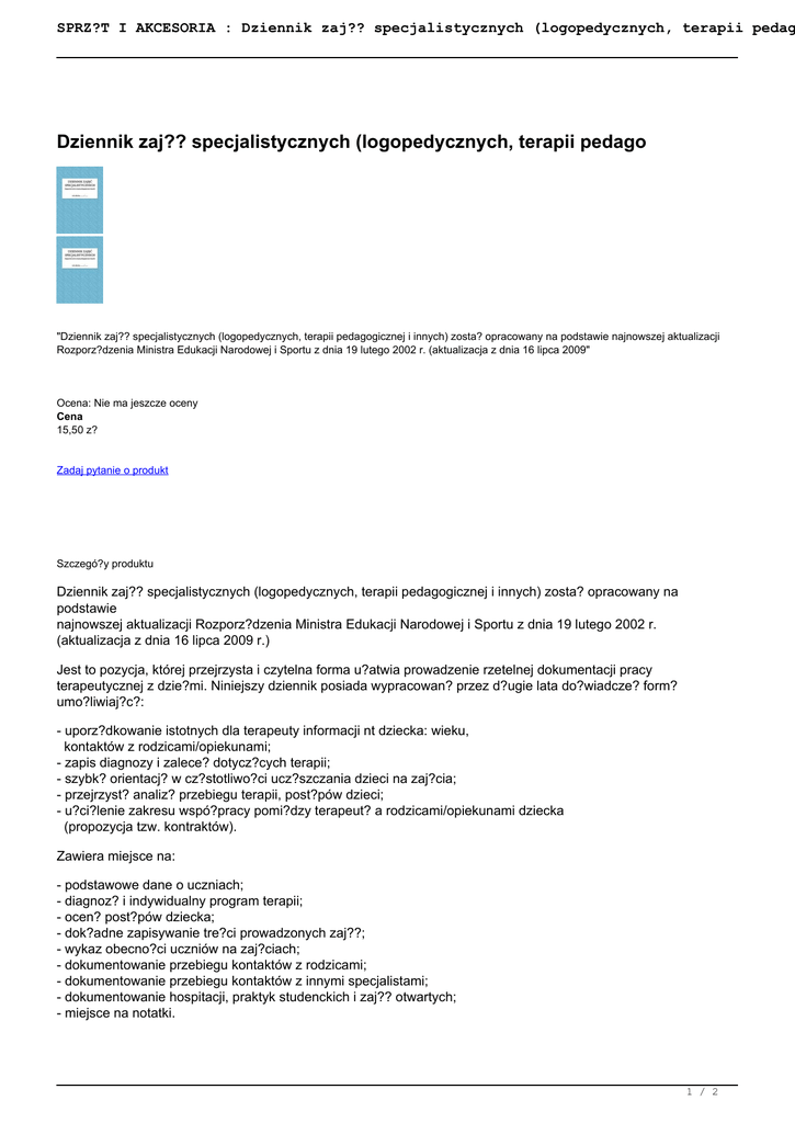 SPRZ?T I AKCESORIA : Dziennik zaj?? specjalistycznych (logopedycznych, terapii pedag Dziennik zaj?? specjalistycznych (logopedycznych, terapii pedago "Dziennik zaj?? specjalistycznych (logopedycznych, terapii pedagogicznej i innych) zosta? opracowany na podstawie najnowszej aktualizacji Rozporz?dzenia Ministra Edukacji Narodowej i Sportu z dnia 19 lutego 2002 r. (aktualizacja z dnia 16 lipca 2009" Ocena: Nie ma jeszcze oceny Cena 15,50 z? Zadaj pytanie o produkt Szczegó?y produktu Dziennik zaj?? specjalistycznych (logopedycznych, terapii pedagogicznej i innych) zosta? opracowany na podstawie najnowszej aktualizacji Rozporz?dzenia Ministra Edukacji Narodowej i Sportu z dnia 19 lutego 2002 r. (aktualizacja z dnia 16 lipca 2009 r.) Jest to pozycja, której przejrzysta i czytelna forma u?atwia prowadzenie rzetelnej dokumentacji pracy terapeutycznej z dzie?mi. Niniejszy dziennik posiada wypracowan? przez d?ugie lata do?wiadcze? form? umo?liwiaj?c?: - uporz?dkowanie istotnych dla terapeuty informacji nt dziecka: wieku, kontaktów z rodzicami/opiekunami; - zapis diagnozy i zalece? dotycz?cych terapii; - szybk? orientacj? w cz?stotliwo?ci ucz?szczania dzieci na zaj?cia; - przejrzyst? analiz? przebiegu terapii, post?pów dzieci; - u?ci?lenie zakresu wspó?pracy pomi?dzy terapeut? a rodzicami/opiekunami dziecka (propozycja tzw. kontraktów). Zawiera miejsce na: - podstawowe dane o uczniach; - diagnoz? i indywidualny program terapii; - ocen? post?pów dziecka; - dok?adne zapisywanie tre?ci prowadzonych zaj??; - wykaz obecno?ci uczniów na zaj?ciach; - dokumentowanie przebiegu kontaktów z rodzicami; - dokumentowanie przebiegu kontaktów z innymi specjalistami; - dokumentowanie hospitacji, praktyk studenckich i zaj?? otwartych; - miejsce na notatki. 1 / 2 SPRZ?T I AKCESORIA : Dziennik zaj?? specjalistycznych (logopedycznych, terapii pedag Dziennik nie zawiera miejsca na informacje ma?o przydatne w procesie terapeutycznym! Liczba stron: 64 Format: A4 Rok wydania: 2009 (sierpie?) Oprawa: mi?kka Cena przesy?ki ustalana indywidualnie. Przed zamówieniem Ten adres pocztowy jest chroniony przed spamowaniem. Aby go zobaczy?, konieczne jest w??czenie w przegl?darce obs?ugi JavaScript. // Termin realizacji zamówienia od 24 h do 14 dni roboczych. s?owa kluczowe: terapia logopedia Opinie Nikt jeszcze nie ocenia? tego produktu. 2 / 2 Powered by TCPDF (www.tcpdf.org)