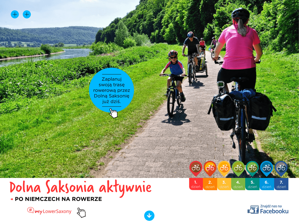 Zaplanuj swoją trasę rowerową przez Dolną Saksonię już dziś. Dolna Saksonia aktywnie ➡ 1. dzień 2. dzień 3. dzień 4. dzień 5. dzień 6. dzień 7. dzień PO NIEMCZECH NA ROWERZE Znajdź nas na ↓ Facebooku DOLNA SAKSONIA AKTYWNIE ➡ PO NIEMCZECH NA ROWERZE 2 Dolna Saksonia Hanower Laatzen NIEMCY Brunszwik Marienburg Hildesheim Holle Hameln 20 km Bodenwerder Holzminden Dolna Saksonia Höxter Goslar Rammelsberg Altenau Clausthal-Zellerfeld Torfhaus Harz Bad Karlshafen era Wez Getynga Dransfeld Bad Lauterberg Duderstadt Celem naszej podróży na rowerach ży. Dzięki wygodnym połączeniom kolejo- była położona na północy Niemiec Dol- wym czas jazdy z Gdańska do Hanoweru na Saksonia. To drugi co do wielkości wyniósł niewiele ponad 8 godzin. Co waż- i najbardziej zróżnicowany niemiecki kraj ne – przy zakupie biletów z odpowiednim związkowy. W żadnym innym nie można wyprzedzeniem mogliśmy zapłacić nawet rano wędrować po górach, a wieczorem o połowę mniej niż jadąc samochodem. spacerować nad morzem. My postanowi- A połączenie z Berlinem, zarówno z Gdań- liśmy obrać kierunek na góry Dolnej Sak- ska, jak i z Warszawy, obsługują specjalne sonii – Harz, a następnie zobaczyć żyjące wagony rowerowe, w których podróżu- rowerami Pogórze Wezerskie. je się razem z jednośladami. Wybierając Na początku słowo o transporcie, który pociąg zamiast samochodu, wspieramy miał niebagatelne znaczenie przy wybo- także ideę zrównoważonego transportu, rze Dolnej Saksonii jako celu naszej podró- dbając tym samym o środowisko. ↑ Pod kościołem św. Ducha w Clausthal-Zellerfeld Hann. Münden Informacje na temat możliwości transportu publicznego dla rowerzystów na: → → http://www.niedersachsen-tourism.com/take-your-bike-on-trains-and-buses Znajdź nas na ↓ Facebooku DOLNA SAKSONIA AKTYWNIE ➡ PO NIEMCZECH NA ROWERZE 1. dzień 3 2. HA N OW E R – M I ASTO Z I ELE NI dzień KR ÓLEWSKI MA R IEN B U R G ↓ Ogrody Herrenhausen ↓ Zamek Marienburg P odróż zaczęliśmy od Hanoweru. W mieście, zniszczonym podczas II wojny światowej, dominuje współczesna architektura. Dostrzec można niewiele obiektów, które przetrwały wojnę albo zostały później symbolicznie odbudowane. Wśród tych pierwszych jest imponujący, ogromny gmach Nowego Ratusza, będący najprawdopodobniej najbardziej rozpoznawalnym budynkiem w Dolnej D Saksonii. Tutejsze Ogrody Herrenhausen są uważane za najpiękniejszy baroko- zień rozpoczął się od wizyty w Café am Südtor w Laatzen, gdzie skusiliśmy się wy park w Europie. Zwiedzanie Hanoweru ułatwia wymalowana na chodniku na regionalną herbatę z Fryzji Wschodniej. Dalej drogą rowerową wiodącą nad czerwona linia, która pozwala poznać najważniejsze obiekty w mieście. Czte- rzeką Leine dotarliśmy do zamku Marienburg. Wrażenie robią zamkowe wnętrza, z ory- rokilometrowy szlak zaczyna i kończy się pod Nowym Ratuszem, a prowadzi ginalnymi zdobieniami i meblami. Nieznajomość niemieckiego nie jest przeszkodą, między innymi do ruin kościoła św. Idziego. gdyż zamek można zwiedzać z audio-przewodnikiem po polsku. Kolejnym koniecznym do zwiedzenia historycznym miastem Dolnej Saksonii jest Hildesheim. Odbudowane w ostatnich latach po wojennych zniszczeniach budynki wokół Rynku Głównego robią naprawdę duże wrażenie. Najefektowniejszy z nich, Knochenhauer Amtshaus, łączący gotyk ze zdobieniami z renesansu, jest na pewno jednym z najpiękniejszych budynków z muru pruskiego, jakie widzieliśmy. Do imponujących obiektów w Hildesheim należą także wczesnoromański kościół św. Michała i mieszcząca się nieco dalej romańska katedra. Obydwie budowle widnieją na liście UNESCO. ↑ Nowy Ratusz w Hanowerze MAPA ↑ Zielony Hanower FILM Z WYPRAWY ↓ Znajdź nas na Facebooku DOLNA SAKSONIA AKTYWNIE ➡ PO NIEMCZECH NA ROWERZE 3. dzień 4 4. U R OK L I WY G OSL A R I Ż YWOTNA KO PALNI A dzień WŚR ÓD N ATU RY ↓ Rynek w Goslar S pośród wszystkich odwiedzonych przez ↓ Torfowiska pod Brockenem Z a cel kolejnego dnia wybraliśmy Torfhaus nas miast na pewno w pamięci na długo pozostanie – ośrodek Parku Narodowego Harzu. Goslar, miasto szczycące się największą liczbą zabytków Ten najwyżej położony punkt naszej wypra- w Niemczech. Ma ich tu być ponad 1500. Klimatyczny- wy jest popularnym miejscem górskich wy- mi, brukowanymi ulicami można by jeździć godzinami, cieczek wśród Niemców. Zachwycał się nim w dodatku będąc zachęcanym przez tablice „bike frei”, nawet sam Goethe. Stamtąd udaliśmy się na znoszące rowerzystom wszelkie ograniczenia. Warto krótką, pieszą wycieczkę wokół wielkich tor- zwrócić uwagę na wpisane na listę UNESCO stare miasto fowisk pod Brockenem. Zaskoczyła nas nie oraz kopalnię w Rammelsbergu, słynącą z nieustanne- tylko ich ogromna powierzchnia, ale także go wydobycia kruszców przez ponad 1000 lat. Stamtąd organizacja i przygotowanie szlaków. Aktual- wybraliśmy się zwiedzać system wodny Górnego Harzu. nie znajduje się tutaj duża liczba restauracji Brzegiem zbiorników wodnych, ukrytych wśród bujnych i miejsc do spania. Miejsce, dzięki swojej bo- lasów Harzu, biegnie dzisiaj Liebesbankweg – turystycz- gatej ofercie, będzie bardzo dobrym wybo- ↑ Torfhaus – centrum informacyjne Parku Narodowego Harzu. rem dla osób aktywnych fizycznie. ny szlak „ławek miłości”. ↑ Kopalnia Rammelsberg MAPA Znajdź nas na ↓ Facebooku DOLNA SAKSONIA AKTYWNIE ➡ PO NIEMCZECH NA ROWERZE 5. dzień 5 6. PR Z YSTA N E K W G E T YNDZ E dzień B AŚN IOWA TR ASA ↓ Most nad Werrą w Hann. Münden ↓ Zamek Kopciuszka w Polle O B dwiedziliśmy dzisiaj między in- aśniowym akcentem szlaku nad Wezerą są ruiny zamku Polle. To na nim miał od- nymi Getyngę, duży ośrodek bywać się bal, podczas którego Kopciuszek zgubił pantofelek. Jadąc Weser-Ra- uniwersytecki. Główny plac miejski, dweg – drog