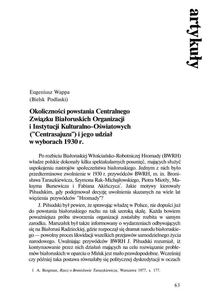 1 A. Bergman, Rzecz o Bronisławie Taraszkiewiczu, Warszawa 1977, s. 177.