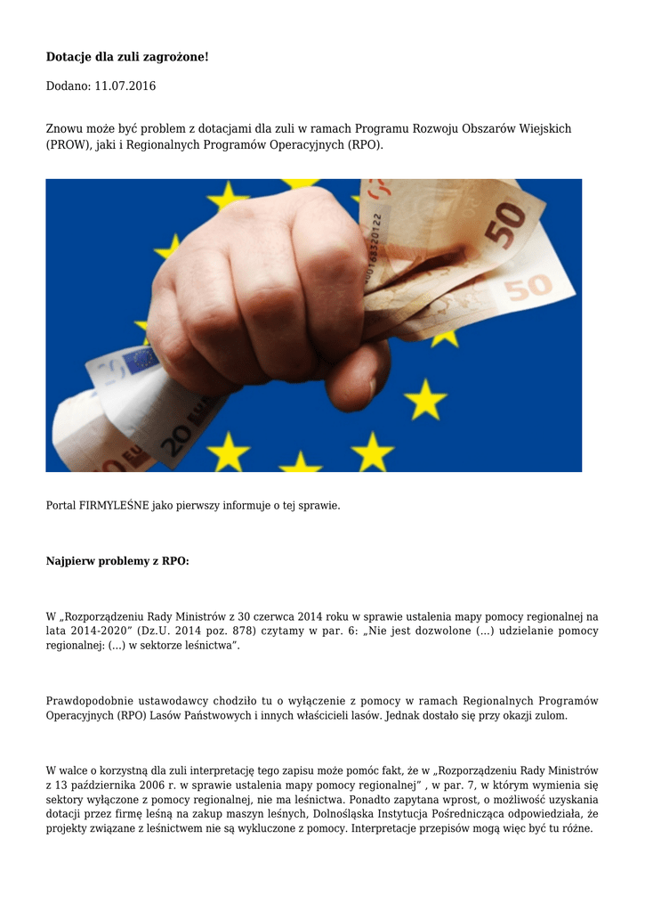 Firmy Leśne - Dotacje dla zuli zagrożone!
