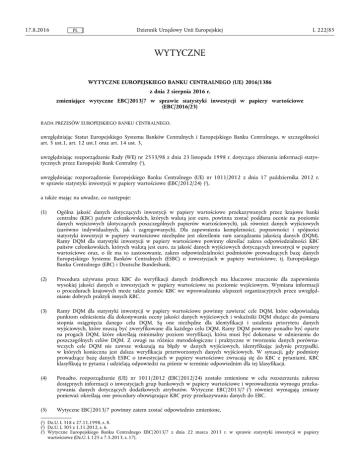WYTYCZNE EUROPEJSKIEGO BANKU CENTRALNEGO (UE) 2016