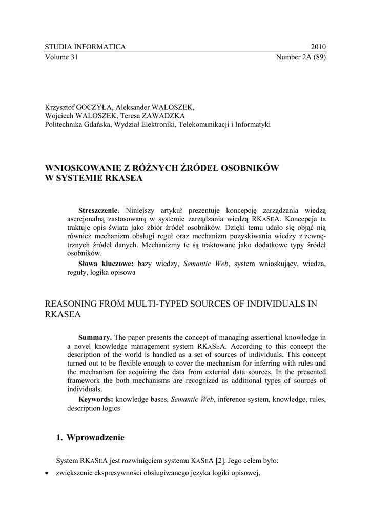 konglomeratowej bazy wiedzy w systemie RkaSeA (praca zgłoszona do publikacji).