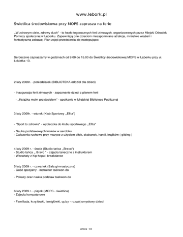 www.lebork.pl - Świetlica środowiskowa przy MOPS zaprasza na ferie