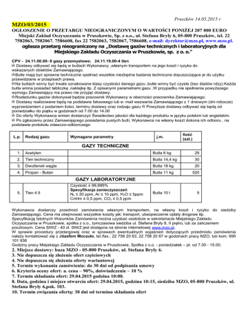 MZO/03/2015 przetarg nieograniczony na „Dostawę gazów