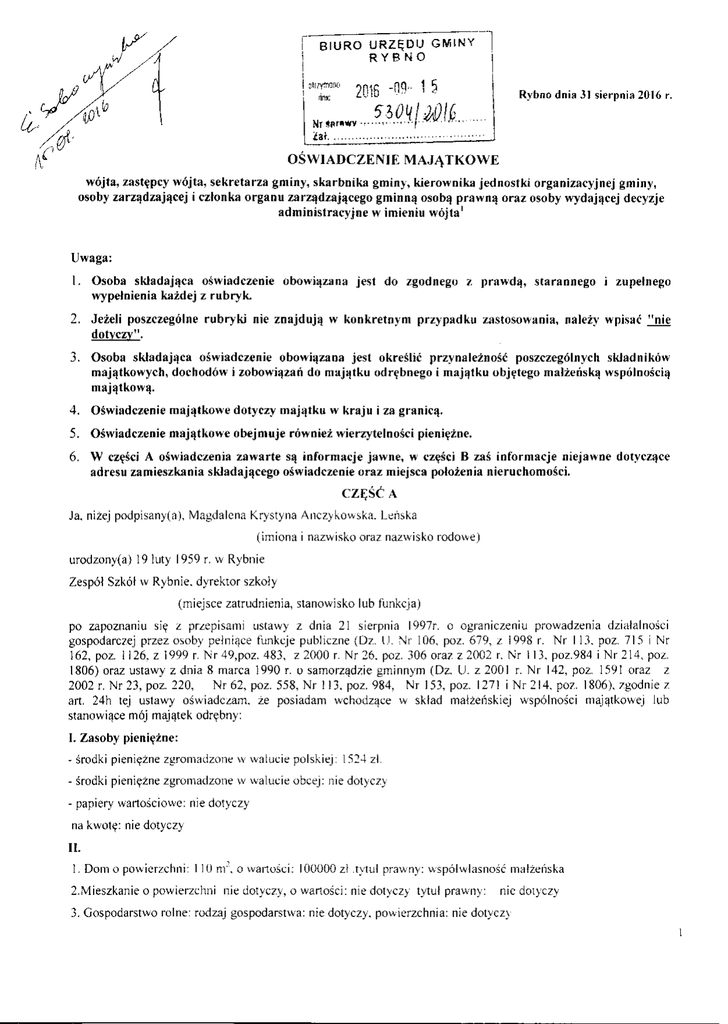 Adres zamieszkania osob) skladajilcci osriadczeniei Rlbno Ul. Zaicziorna