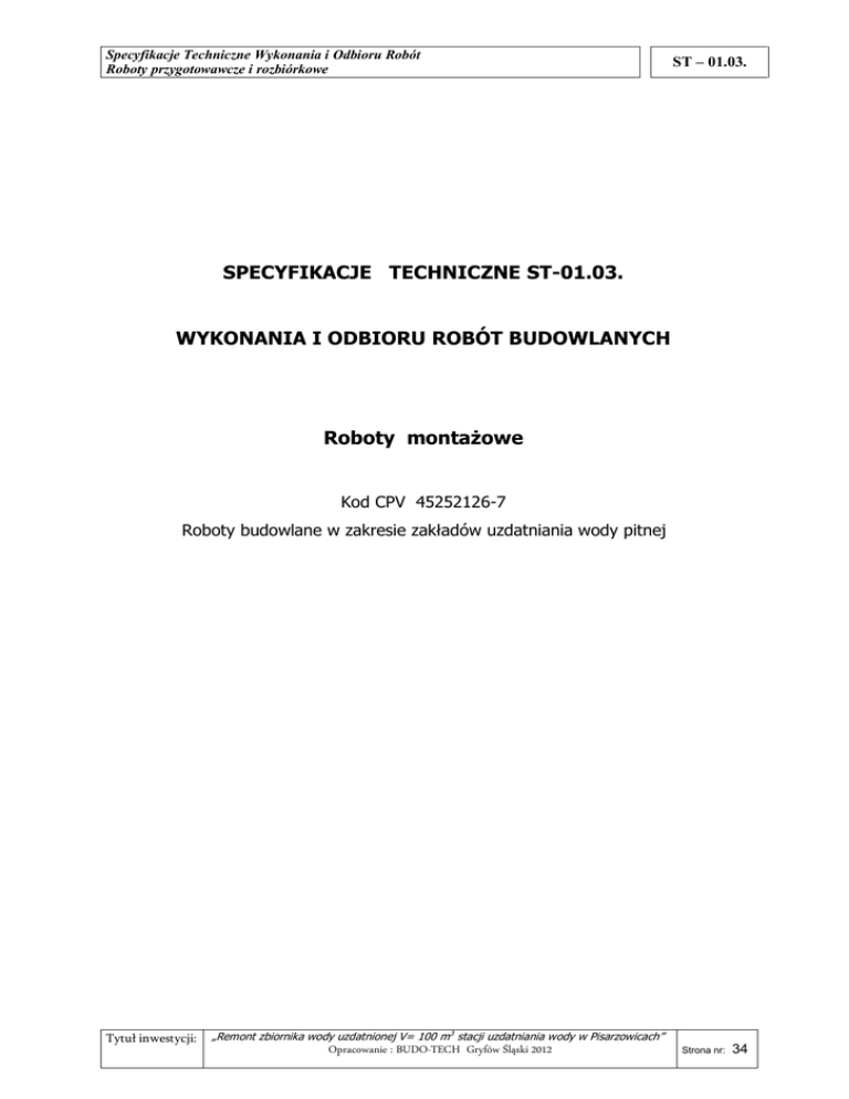 SPECYFIKACJE TECHNICZNE ST-01.03. WYKONANIA I ODBIORU