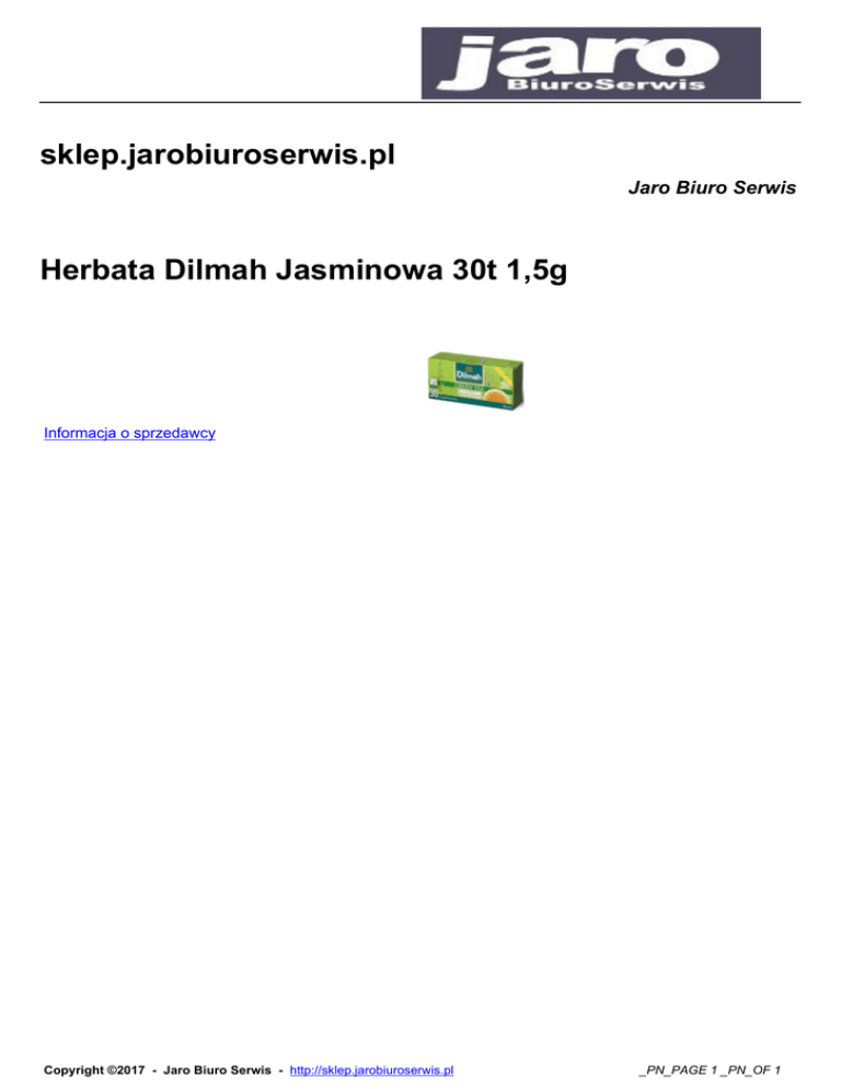 sklep.jarobiuroserwis.pl Jaro Biuro Serwis Herbata Dilmah Jasminowa 30t 1,5g Informacja o sprzedawcy Copyright ©2017 - Jaro Biuro Serwis - http://sklep.jarobiuroserwis.pl _PN_PAGE 1 _PN_OF 1