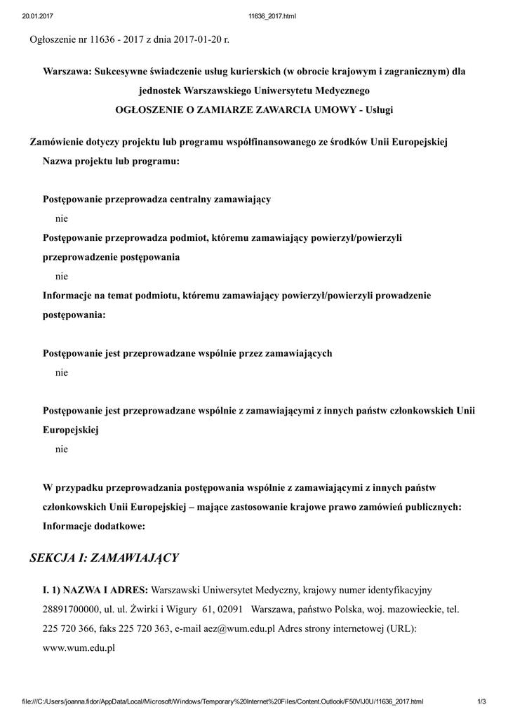 sekcja i: zamawiający - WUM Zamówienia publiczne
