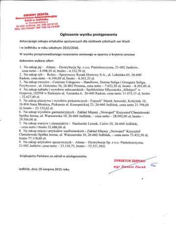dotyczącego zakupu artykułów spożywczych dla stołówek szkolnych we Wsoli