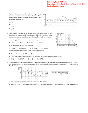 1. Wykres obok przedstawia zmiany temperatury podczas pewnego