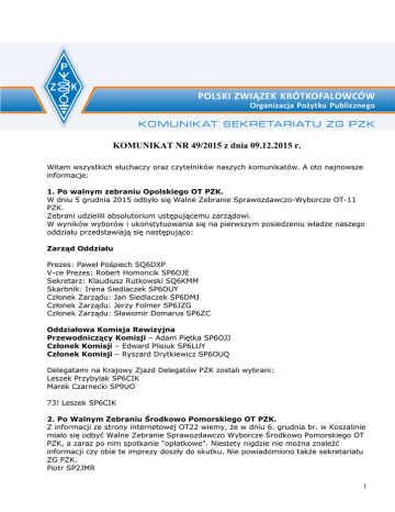 KOMUNIKAT NR 49/2015 z dnia 09.12.2015 r.