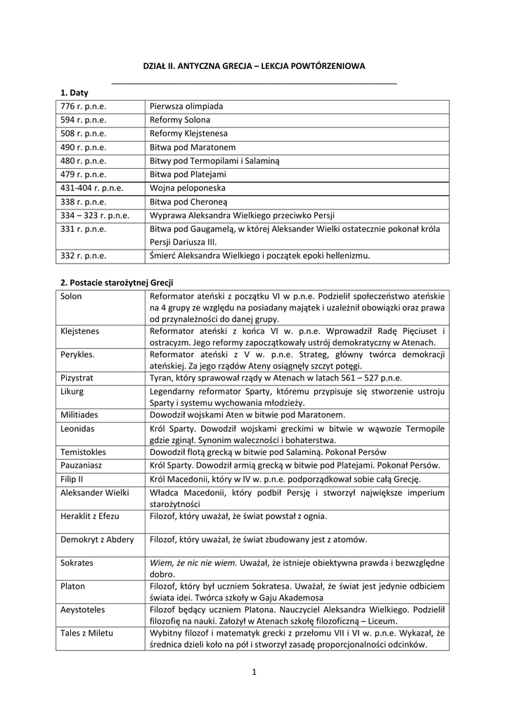 1 DZIAŁ II. ANTYCZNA GRECJA – LEKCJA POWTÓRZENIOWA 1