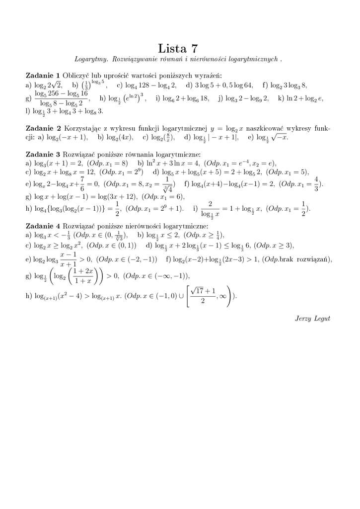 Logarytmy. Rozwi¡zywanie równa« i nierówno±ci logarytmicznych .