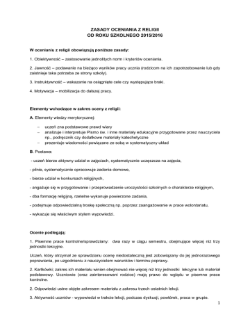 1 ZASADY OCENIANIA Z RELIGII OD ROKU SZKOLNEGO 2015/2016