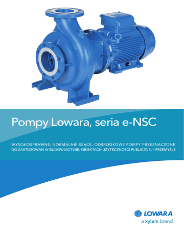 Pompy Lowara, seria e-NSC W YSOKOSPR AWNE, NORMALNIE SSĄCE, ODŚRODKOWE POMPY PRZEZNACZONE DO ZASTOSOWAŃ W BUDOWNICTWIE, OBIEKTACH UŻYTECZNOŚCI PUBLICZNEJ I PRZEMYŚLE Podnosimy standard pomp odśrodkowych na wyższy poziom Wysoka sprawność. Długa żywotność i łatwa obsługa. Nowo zaprojektowana hydraulika o wysokiej sprawności, z wartością MEI przewyższającą wymagania dyrektywy ErP 2015 w połączeniu z silnikiem IE3 pozwala uzyskać bardzo niskie koszty eksploatacji. konserwacja Solidna konstrukcja, różne wielkości korpusów łożyskowych oraz wymienne pierścienie szczelinowe ze stali nierdzewnej zapewniają długotrwałą pracę pompy. Seria pomp e-NSC jest zaprojektowana w sposób ułatwiający obsługę, a wszystkie punkty serwisowe są łatwo dostępne w celu zminimalizowania czasu przestojów. Dostosowanie do potrzeb. W wielu instalacjach, zapotrzebowanie na wodę jest zmienne. Poprzez wyposażenie pomp e-NSC w system Hydrovar, wymagany punkt pracy jest zawsze utrzymywany bez względu na rozbiory wody. Koszt inwestycji w Hydrovara najszybciej zwraca się przy zmianie prędkości obrotowej od 100% do 50%. W takim zakresie zapotrzebowanie mocy spada nawet o 85%. Dzięki połączeniu wysokiej sprawności z wysoką elastycznością dostosowania się do systemu, różnymi wykonaniami materiałowymi i temperaturowymi, nowa seria Lowara e-NSC jest właściwym wyborem dla transportu wody, układów grzewczych i chłodniczych, układów przeciwpożarowych i niezliczonej ilości zastosowań przemysłowych. Z poziomem sprawności przekraczającym wymagania dyrektywy ErP 2015, seria e-NSC stanowi długoterminowe i ekonomiczne rozwiązanie z zakresu pompowania. Idealna konfiguracja. Dzięki szerokiej gamie wykonań materiałowych: od żeliwa do stali nierdzewnej typu duplex, pompy serii e-NSC są właściwym rozwiązaniem dla tysięcy aplikacji. Ciecz gorąca lub zimna. Pompa e-NSC może pompować ciecze o temperaturze od -25°C do +120°C, wersja o rozszerzonym zakresie temperatur: do +140°C. Zapewniona szczelność. Seria e-NSC oferuje szeroką gamę dostępnych uszczelnień mechanicznych pod względem ich typów i materiałów konstrukcyjnych. Charakterystyka 02 Obudowa pompy: DN32 do DN300 Moc: 1,1 kW – 75 kW (2-polowy) 0,25 kW – 315 kW (4-polowy) Wysokośc podnoszenia do: 160 m Przepływ do: 1800 m3/h Klasa ciśnieniowa: PN16 Temperatur pompowanej cieczy: -25°C to +120°C, w rozszerzonym zakresie temperatur -25°C to +140°C Wersja falownika: Hydrovar Opcje materiałowe Wersje wykonania Obudowa pompy: żeliwo, żeliwo sferoidalne, stal nierdzewna 1.4401/1.4408, stal nierdzewna 1.4517 typu duplex Wirnik: żeliwo, brąz, stal nierdzewna 1.4401/1.4408, stal nierdzewna 1.4517 typu duplex Elastomery: EPDM, FPM (inne materiały dostępne na życzenie) Uszczelnienia mechaniczne: Ceramika, Grafit, Węglik krzemu i Węglik wolframu Konfiguracje: z wolnym wałem, blokowa, na płycie fundamentowej Xylem |’zīl m| e 1) Roślinne tkanki przewodzące, transportujące w górę wodę z substancjami odżywczymi pobranymi z gleby przez korzenie; 2) globalny lider w technologii wodnej. Jesteśmy międzynarodowym zespołem, połączonym wspólnym celem: tworzenie zaawansowanych technologicznie rozwiązań, aby sprostać światowym wyzwaniom związanym z wodą. Opracowywanie nowych technologii, które usprawnią sposób wykorzystania wody, jej oszczędzanie oraz ponowne wykorzystanie w przyszłości ma kluczowe znaczenie dla naszej pracy. Oferujemy produkty i usługi w zakresie transportowania, uzdatniania, analizowania, monitorowania oraz odprowadzania wody oczyszczonej do środowiska dla zastosowań komunalnych, przemysłowych, a także w usługach budownictwa komercyjnego i mieszkalnego oraz gospodarstwach rolnych. Dzięki przejęciu firmy Sensus w październiku 2016, do swojego portfolio rozwiązań Xylem włączył inteligentne opomiarowanie, technologie sieciowe oraz zaawansowaną analizę danych dla urządzeń wodnych, gazowych i elektrycznych. Nawiązaliśmy silne, długotrwałe relacje z klientami w ponad 150 krajach, dzięki skutecznemu połączeniu produktów wiodących marek, wieletniemu doświadczeniu, równocześnie koncentrując się na opracowywaniu kompleksowych, zrównoważonych rozwiązań. Więcej informacji o tym, jak Xylem może Tobie pomóc znajdziesz na stronie xyleminc.com Dawidy, ul. Warszawska 49 05-090 Raszyn, Poland www.xylem.pl www.lowara.pl Tel. +48 22 735 81 00 Fax +48 22 735 81 99 E-mail: [email protected] [email protected] Xylem Water Solutions Polska Sp. z o.o. zastrzega sobie prawo do wprowadzania modyfikacji bez wcześniejszego powiadomienia. Lowara, Flygt, Godwin, Leopold, Sanitaire, Wedeco, Xylem to znak towarowy Xylem Inc., lub jednego z oddziałów tej firmy © 2017 Xylem, Inc. cod. 19100264A - P01/17 Xylem Water Solutions Polska Sp. z o.o. Wsparcie techniczne i obsługa klienta: Biuro Zarządu: