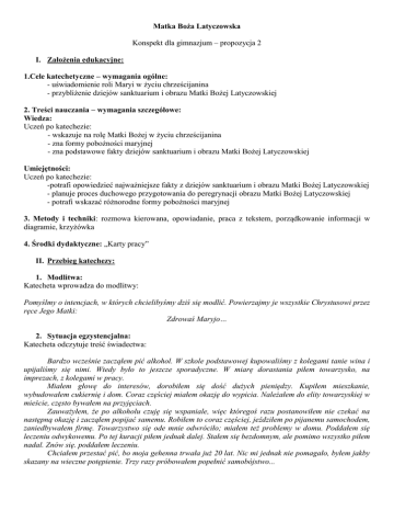 Matka Boża Latyczowska Konspekt dla gimnazjum
