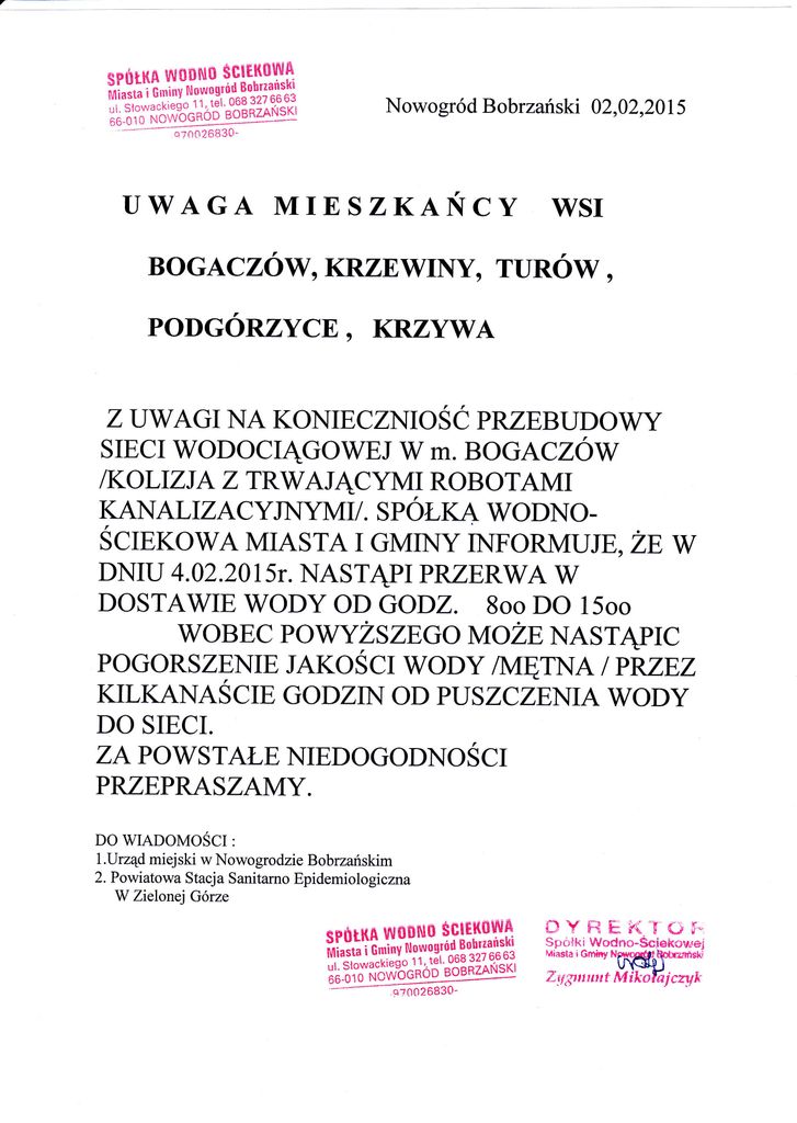 KANALIZACYJNYMI/. SPOŁKĄ WoDNoSCIEKOWA MIASTA I GMNY INFORMUJE,ZE W