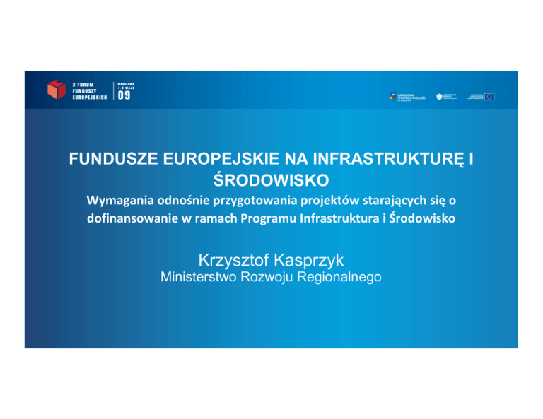 FUNDUSZE EUROPEJSKIE NA INFRASTRUKTURĘ I ŚRODOWISKO Wymagania odnośnie przygotowania projektów starających się o dofinansowanie w ramach Programu Infrastruktura i Środowisko Krzysztof Kasprzyk Ministerstwo Rozwoju Regionalnego Przygotowanie projektów Program Infrastruktura i Środowisko: – autostrady, linie kolejowe, metro, lotniska, – oczyszczalnie ścieków, zbiorniki retencyjne, ścieŜki w parkach narodowych, wyposaŜenie straŜy poŜarnej, – farmy wiatrowe, sieci gazowe, termomodernizacja, – muzea, zabytki, szkoły artystyczne, – remonty szpitali, zakup ambulansów, lądowiska dla helikopterów medycznych, – nowe budynki dla szkół wyŜszych… Co łączy te obszary? Przygotowanie projektów Kolejne kroki beneficjenta: 1. 2. 3. 4. 5. Co chcemy osiągnąć? (definicja celu) Jakie są moŜliwe warianty osiągnięcia celu? (studium wykonalności) Który wariant jest najlepszy (najefektywniejszy, najbardziej przyjazny środowisku, …)? Co dokładnie trzeba, aby zrealizować projekt (pozwolenia, dokumentacja techniczna)? Jak przekonać oceniających wnioski, Ŝe nasz projekt jest najlepszy? Przygotowanie projektów Podstawowe dokumenty – studium wykonalności (lub inny analogiczny dokument) – przygotowywane na wczesnym etapie, nie dopiero na potrzeby wniosku, kiedy poniesiono juŜ znaczące koszty przygotowania dokumentacji technicznej, wykupu gruntów, itp. jego kluczowe elementy to: – – – – – analiza wariantów, analiza popytu, analiza finansowa, dokumentacja środowiskowa – przygotowana starannie, z zachowaniem wszystkich wymogów prawa unijnego i polskiego, dokumenty potwierdzające gotowość projektu do realizacji (potwierdzenie prawa dysponowania gruntem, pozwolenia na budowę w zakresie określanym indywidualnie dla danego typu projektu Przygotowanie projektów Zadania ekspertów oceniających wnioski: 1. Jednakowe traktowanie beneficjentów, stąd: – – – 2. konieczność zapewnienia odpowiedniej jakości studiów wykonalności, aby punkty dla projektów były przyznawane w oparciu o wiarygodne dane, konieczność egzekwowania wytycznych, aby zapewnić porównywalność danych, kryteria w ramach Programu są bardzo precyzyjnie określone (są w miarę moŜliwości mierzalne) Efektywne wykorzystanie pieniędzy podatnika, stąd: – – 3. konieczność dokładnej weryfikacji studium wykonalności pod kątem tego, czy został wybrany odpowiedni wariant, Sprawdzenie, czy projekt będzie w stanie utrzymać się po jego realizacji. Szybka realizacja projektów, stąd: – dodatkowe punkty za udokumentowane przygotowanie projektów Przygotowanie projektów Rozwiązania stosowane w ramach Programu 1. 2. 3. 4. Przygotowane we współpracy z ekspertami Europejskiego Banku Inwestycyjnego przewodniki do przygotowania projektów w sektorze transportu, tzw. niebieska księga Preselekcja w wybranych działaniach – tj. moŜliwość oceny projektów konkursowych w oparciu o ograniczoną dokumentację i konieczność dostarczenia pełnej dokumentacji tylko dla projektów, które zostały wybrane UzaleŜnienie poziomu dofinansowania od wysokości opłat ponoszonych przez uŜytkowników infrastruktury, aby to uŜytkownicy skorzystali przede wszystkim ze wsparcia ze środków Unii Europejskiej Dla duŜych projektów – moŜliwość weryfikacji dokumentacji, w tym środowiskowej i wsparcia przy jej przygotowaniu przed formalna oceną, w tym z wykorzystaniem ekspertów inicjatywy JASPERS Przygotowanie projektów Najczęstsze błędy 1. 2. 3. 4. 5. Zła kolejność przygotowania dokumentów – najpierw wybór technicznej opcji realizacji, bez analizy alternatyw, a następnie próba wykazania, Ŝe jest to wariant najlepszy Zbyt optymistyczne załoŜenia odnośnie moŜliwych do osiągnięcia celów projektu, pewne dane „z sufitu” Nierealistyczny harmonogram realizacji i brak analizy ryzyka – beneficjent z góry powinien przewidzieć, co zrobi, kiedy koszt inwestycji będzie większy, lub jej realizacja się opóźni Nieprawidłowo przygotowana dokumentacja środowiskowa Niespójności we wniosku o dofinansowanie