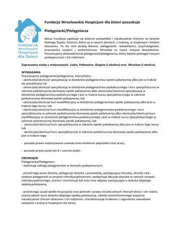 Fundacja Wrocławskie Hospicjum dla Dzieci poszukuje Pielęgniarki