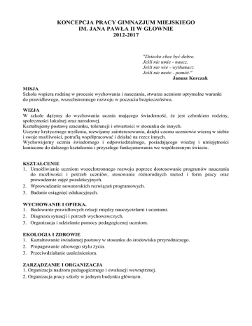 Koncepcja pracy szkoły - Gimnazjum Miejskie im. Jana Pawła II w