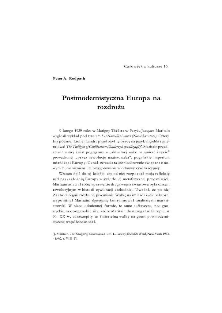 P. A. Redpath, Postmodernistyczna Europa[...]