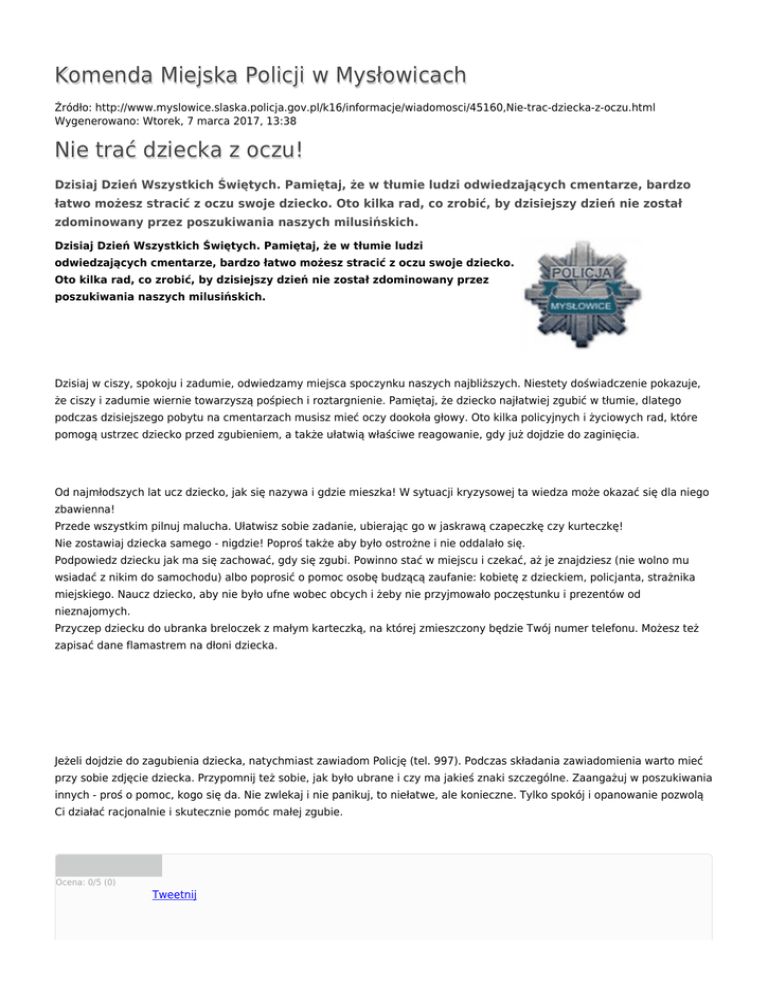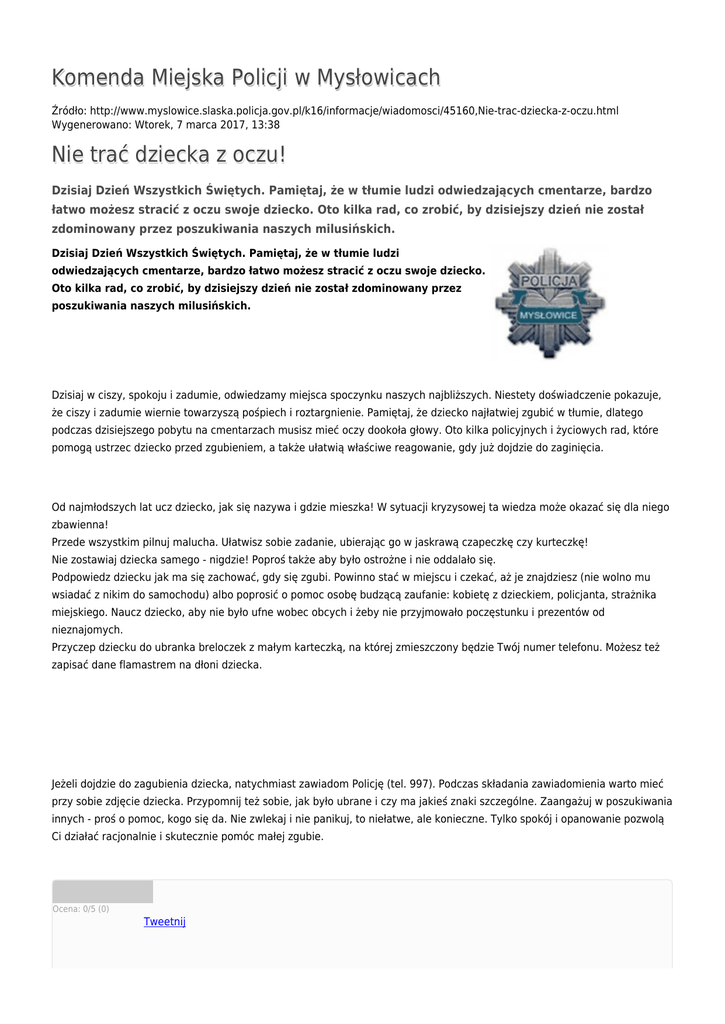 Komenda Miejska Policji w Mysłowicach Nie trać dziecka z oczu!