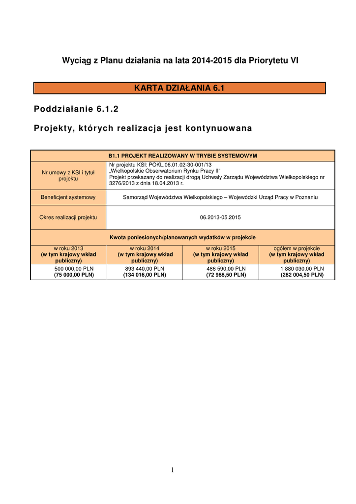 Wyciąg z Planu działania na rok 2014 dla Priorytetu VI