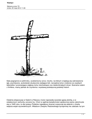 Wyklęci Wpisany przez TK środa, 02 maja 2012 11:26 Sala pogrążona w półmroku, szubieniczny sznur, biurko, na którym znajdują się zakrwawione igły, prymitywne, aczkolwiek skutecznie zadające ból, narzędzia tortur zrobione ze zwykłych taboretów i przerażające odgłosy tortur dochodzące zza niedomkniętych drzwi. Sceneria rodem z thrillera, mamy jednak do czynienia z wystawą poświęconą polskiej historii. Ostatnia ekspozycja w Galerii w Ratuszu może naprawdę wywołać gęsią skórkę, a w ostatecznym rachunku szczere łzy. Choć w ogólnej świadomości społecznej wojna zakończyła się w 1945 roku, to dla tysięcy Polaków największy dramat rozpoczął się właśnie z chwilą wejścia wojsk wyzwoleńczych. Władzom Związku Radzieckiego bynajmniej nie zależało na tym 1/3 Wyklęci Wpisany przez TK środa, 02 maja 2012 11:26 by Polska stała się wolnym krajem. Wszelkie odruchy zdrowego patriotyzmu postanowiono więc skutecznie zdławić tak by nowo wprowadzony ustrój komunistyczny, nie był w żaden sposób zagrożony. Wykorzystując dwie potężne siły: jedną prezentowaną przez bezwzględnych i sadystycznych oprawców o polsko brzmiących nazwiskach, a często obcym pochodzeniu i drugą w postaci propagandy i umiejętnym manipulowaniu informacją, dokonali czegoś niemalże niemożliwego. Zniszczyli i na dziesiątki lat oczernili tych, którzy jeszcze niedawno dzielnie walczyli z niemieckim okupantem w szeregach Armii Krajowej. Nazwali ich bandytami i obeszli się z nimi w sposób uwłaczający wszelkiej godności. Wielu po okrutnych torturach zabili. Pokazywali ich polskiej ludności jako przestępców, którzy w pełni zasłużyli sobie na swój los. Na wystawie z porozwieszanych tablic patrzą dziesiątki oczu. Twarze w różnym wieku, zwyczajni ludzie, jakich mija się na ulicach. Większości zdjęć towarzyszy krótka notka historyczna. Ci „zwyczajni ludzie” to bohaterowie, którzy w okresie drugiej wojny światowej nie zważając na własne życie postanowili walczyć o swoją Ojczyznę. Niektórzy byli wówczas bardzo młodzi. Ruszyli do lasów gdzie włączyli się w szeregi partyzantów i w obliczu Boga i Najświętszej Maryi przysięgali być wierni Rzeczypospolitej Polskiej, stać na straży jej honoru i działać dla jej wyzwolenia. W owej krótkiej notce towarzyszącej zdjęciom opisano też w jaki sposób obszedł się z nimi nowy system. Niejednokrotnie cytowane są wypowiedzi relacjonujące rozprawy sądowe i niehumanitarne traktowanie w więzieniach. Pojawiają się również kopie wysyłanych potajemnie listów. Wyłania się z nich obraz synów, mężów, ojców, prawdziwe uczucia i głęboka wiara. Łatwo wydedukować, że w rzeczywistości, która przypominała piekło tylko miłość i ugruntowano silnie w duchu poczucie sensu mogły przeciwstawić się bezdusznym trybom komunistycznej machiny i nie dopuścić do psychicznego załamania. Na co niewątpliwie należy zwrócić uwagę to fakt, że wiele z opisanych dramatów odbywało się w bliskiej okolicy naszego miasta. Występują także stricte brzeskie wątki. Wystawa stawia wiele pytań i nie można przejść przy niej obojętnie. Pewna właściwość społeczna sprawia, że w czasie pokoju do rangi najwyższego dobra urasta wolność jednostki, a obowiązki patriotyczne postrzegane są jako zbędny balast lub wręcz zagrożenie. Ekspozycja zdaje się polemizować z wygodnicką postawą współczesnych. Gdy nurty globalizacyjne obalają wszelką odrębność kulturową wymazując tradycję i religię, szereg wykonanych z brzozy krzyży z nazwiskami bohaterów zamordowanych przez komunistyczny system przypomina, że są wyższe wartości, w które można wierzyć i to nawet za cenę życia. Być może pod płaszczykiem wolnościowym ulegamy nowej propagandzie: mieć nie być? Wystawa prezentowana jest w dwóch odsłonach. Na jednej sali zgromadzono materiały w znacznej mierze wypożyczone z IPN i jest to typowa ekspozycja informacyjna „do poczytania”. Druga ma charakter bardziej oddziałujący na sferę intuicyjno-emocjonalną z instalacjami odtwarzającymi miejsca kaźni i prezentacjami multimedialnymi. Warto nadmienić, że materiały prezentowane w Galerii są preludium wydarzenia jakie będzie miało miejsce 13 maja tego roku. 2/3 Wyklęci Wpisany przez TK środa, 02 maja 2012 11:26 Ulicami Brzegu przejdzie wówczas marsz pamięci Rotmistrza Pileckiego i Żołnierzy Wyklętych. Całość rozpocznie się od mszy w kościele p. w. Miłosierdzia Bożego o godzinie 19-tej. Pochodowi towarzyszyć będą rekonstrukcje minionych zdarzeń a całość zakończy się koncertem na Zamku Piastów Śląskich w Brzegu. tk 3/3