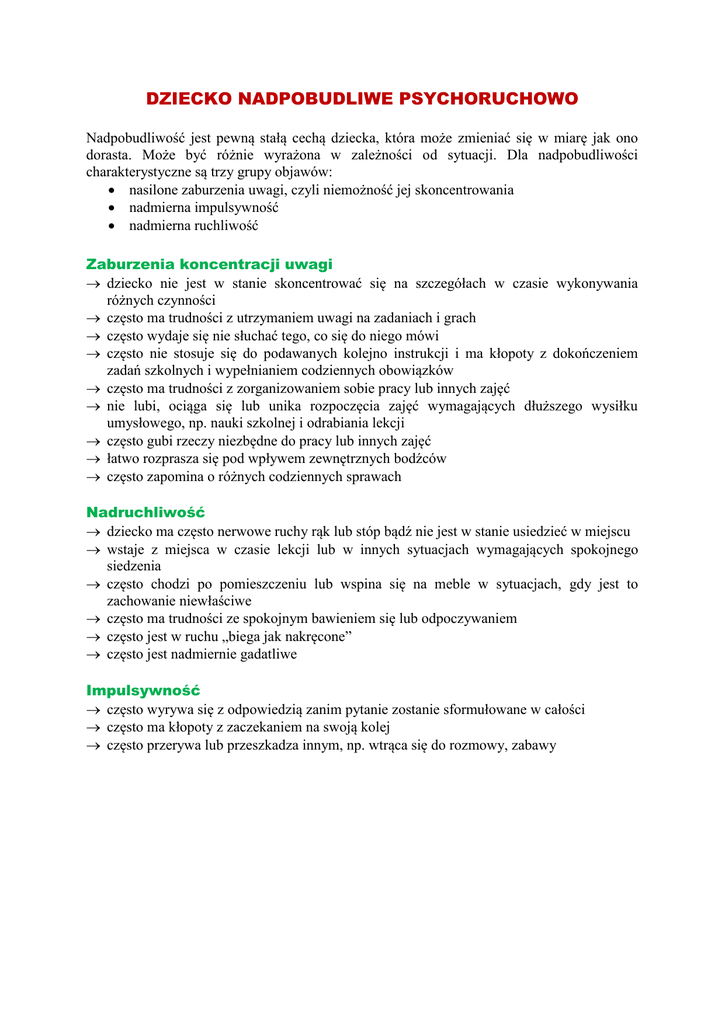 DZIECKO NADPOBUDLIWE PSYCHORUCHOWO