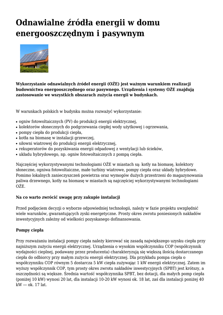 Odnawialne źródła energii w domu energooszczędnym i pasywnym