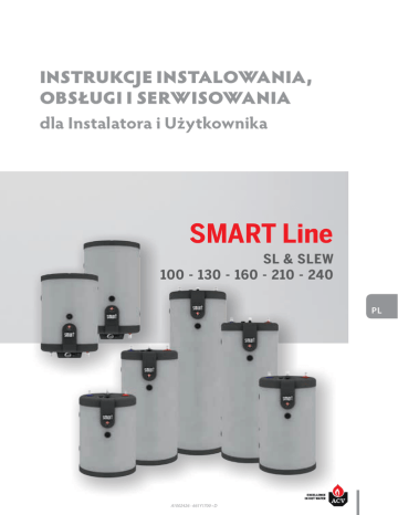 EN INSTRUKCJE INSTALOWANIA, OBSŁUGI I SERWISOWANIA dla Instalatora i Użytkownika FR NL ES IT SMART Line SL & SLEW 100 - 130 - 160 - 210 - 240 DE PL RU A1002426 - 661Y1700 • D EN SPIS TREŚCI ZALECENIA OGÓLNE..................................................................................4 FR INFORMACJA O PRODUKCIE.....................................................................5 Etykieta energetyczna......................................................................................................................................... 5 Oznaczenie................................................................................................................................................................... 6 NL PRZEWODNIK UŻYTKOWNIKA.................................................................7 Panel sterowniczy (Tylko SLEW).................................................................................................................. 7 ES OPIS URZĄDZENIA......................................................................................8 Modele - SL / SLEW 100 - 130 - 160 - 210 - 240................................................................................................. 8 CHARAKTERYSTYKA TECHNICZNA........................................................10 IT Wymiary i Charakterystyka ogólna.........................................................................................................10 Charakterystyka elektryczna........................................................................................................................12 Wydajność ciepłej wody..................................................................................................................................14 DE INSTALOWANIE.........................................................................................15 Instrukcje bezpieczeństwa............................................................................................................................15 Opakowanie...............................................................................................................................................................17 PL Narzędzia......................................................................................................................................................................17 Instalowanie : SL 100 - 130 - 160 - 210 - 240...................................................................................18 Instalowanie : SLEW 100 - 130 - 160 - 210 - 240...........................................................................19 RU Podłączenia................................................................................................................................................................20 SLEW jako elektryczny podgrzewacz wody...................................................................................23 Zestawy i akcesoria..............................................................................................................................................23 pl 2 Smart Line SL & SLE W : A1002426 - 661Y1700 • D EN SPIS TREŚCI URUCHOMIENIE........................................................................................24 FR Instrukcje bezpieczeństwa przy napełnianiu wymiennika ...............................................24 Napełnianie................................................................................................................................................................25 Czynności przed uruchomieniem............................................................................................................27 Procedura uruchamiania.................................................................................................................................27 NL SERWISOWANIE........................................................................................28 Okresowa kontrola użytkownika..............................................................................................................28 Coroczna kontrola.................................................................................................................................................28 ES Uruchomienie po przeglądzie serwisowym...................................................................................30 Wymiana grzałki elektrycznej (SLEW)..................................................................................................31 Usterki.............................................................................................................................................................................32 IT DE PL RU pl Smart Line SL & SLE W : A1002426 - 661Y1700 • D 3 EN ZALECENIA OGÓLNE UWAGI FR • Dokumentacja stanowi integralną część urządzenia. Zawiera ważne informacje dotyczące instalowania, uruchomienia i serwisowania wymiennika. • Dokumentacja musi być przekazana użytkownikowi i przechowywana w bezpiecznym miejscu. Nie ponosimy odpowiedzialności za żadne uszkodzenia wynikające z niezastosowania się do treści zawartych w niniejszej instrukcji. NL Najważniejsze informacje dla zapewnienia bezpieczeństwa obsługi i ochrony środowiska ES IT • Jakiekolwiek modyfikacje urządzenia bez pisemnej zgody producenta są zabronione. • Urządzenie może być zainstalowane wyłącznie przez wykwalifikowany personel i zgodnie z obowiązującymi przepisami. • Instalacja winna być wykonana zgodnie z wytycznymi zawartymi w tej instrukcji oraz aktualnymi normami i przepisami dotyczącymi produkcji ciepłej wody. • Zainstalowanie urządzenia niezgodnie z niniejszą instrukcją grozi porażeniem i/ lub zanieczyszczeniem środowiska a ponadto jest jednoznaczne z utratą gwarancji producenta. • Producent nie ponosi odpowiedzialności za uszkodzenia spowodowane błędnym zainstalowaniem oraz stosowaniem nieoryginalnych części zamiennych. Najważniejsze