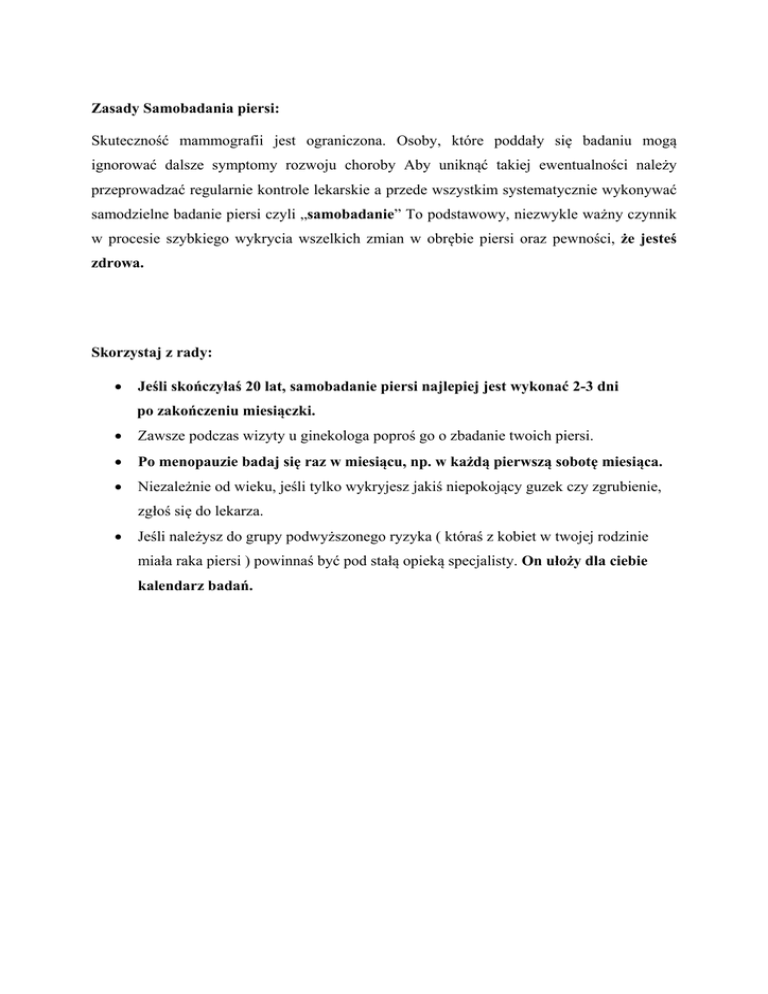 Zasady Samobadania piersi: