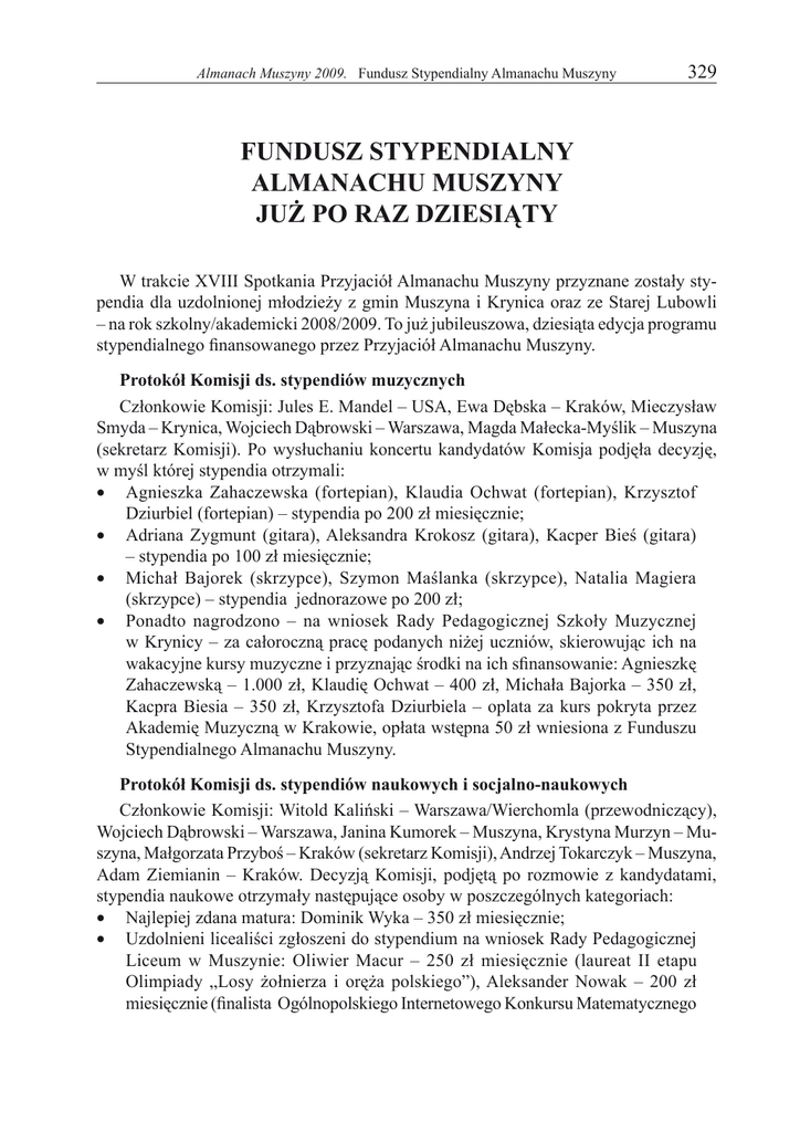 fundusz stypendialny almanachu muszyny już po raz dziesiąty