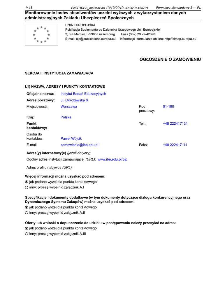 Ogłoszenie o zamówieniu - Instytut Badań Edukacyjnych