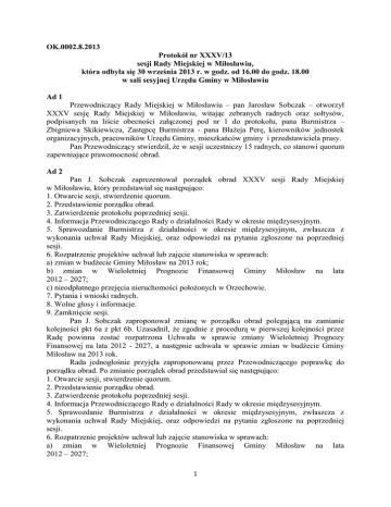 OK.0002.8.2013 Protokół nr XXXV/13 sesji Rady Miejskiej w