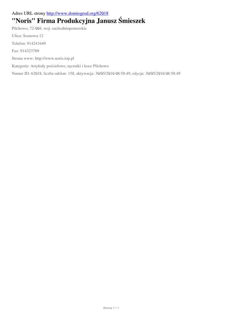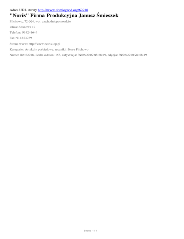 "Noris" Firma Produkcyjna Janusz Smieszek, Pilchowo, Sosnowa 12