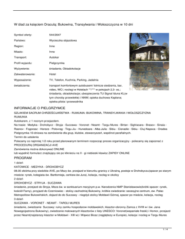 wyżywieniem, parkingów, opłat wjazdowych do miast, przewodnika - płatna w EURO dla dobra uczestników, którzy mogą