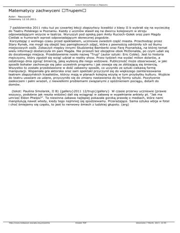 manipulacji. Wspaniała gra aktorska oraz sam spektakl przyczynił się do większego zainteresowania
