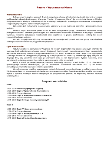 oszlifowania i odpowiedniej oprawy. Warsztaty "Passio - Wyprawa na Marsa" dla uczestników Konkursu E(x)plory